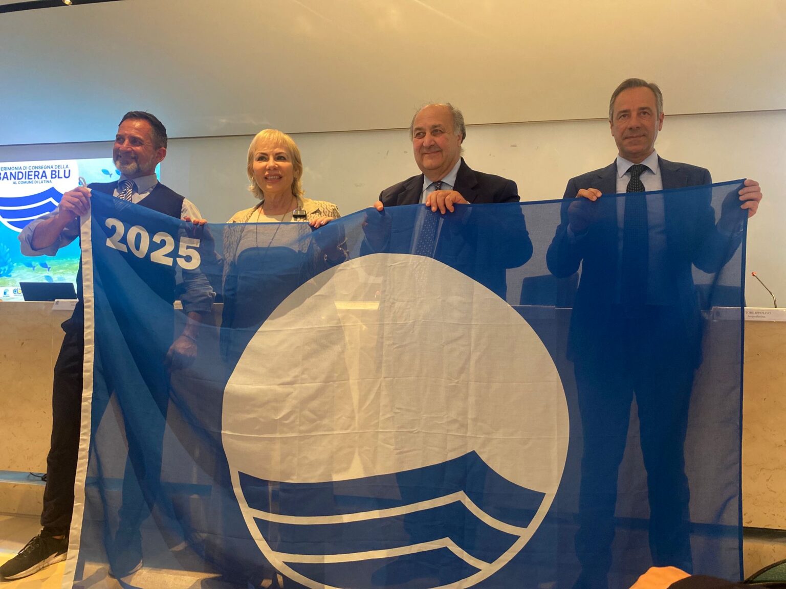 Si è tenuta questa mattina, nella sala De Pasquale, la cerimonia di consegna della bandiera blu 2025. A consegnare al sindaco Matilde Celentano il vessillo, ottenuto per la dodicesima volta dal Comune di Latina, è stato il presidente di Fee Italia Claudio Mazza. Gli assessori all’Ambiente Franco Addonizio e alla Marina Gianluca Di Cocco, insieme alla prima cittadina, hanno chiarito il lavoro portato avanti dagli uffici per rispettare i parametri richiesti e ottenere, anno dopo anno, la conferma. Presente anche il presidente di Abc Alessandro Angelini e, per fornire informazioni tecniche sullo stato delle acque del litorale di Latina, Laura Aguzzi di Arpa Lazio, il direttore tecnico di Acqualatina Ettore Ippolito e il responsabile acque reflue di Acqualatina Stefano Fabietti.