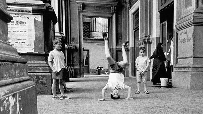 “Senza tempo. Le fotografie di Gianni Berengo Gardin hanno questa precisa qualità. Mentre raccontano eventi accaduti in un momento specifico e irripetibile, sono eternamente declinabili al tempo presente. Come la singola fabbrica che è in realtà tutte le fabbriche fatte di macchinari e esseri umani; come Venezia negli anni ’60 cristallizzata nelle stesse gondole, gli stessi vaporetti e la stessa inarrestabile acqua alta che ancora oggi sono simbolo della città; come i campi arati e le periferie, i medesimi paesaggi che tracciano ancora oggi i nostri orizzonti; come i bambini che in ogni luogo e in ogni epoca corrono, fanno acrobazie e giocano per le strade dei paesi e delle città”.