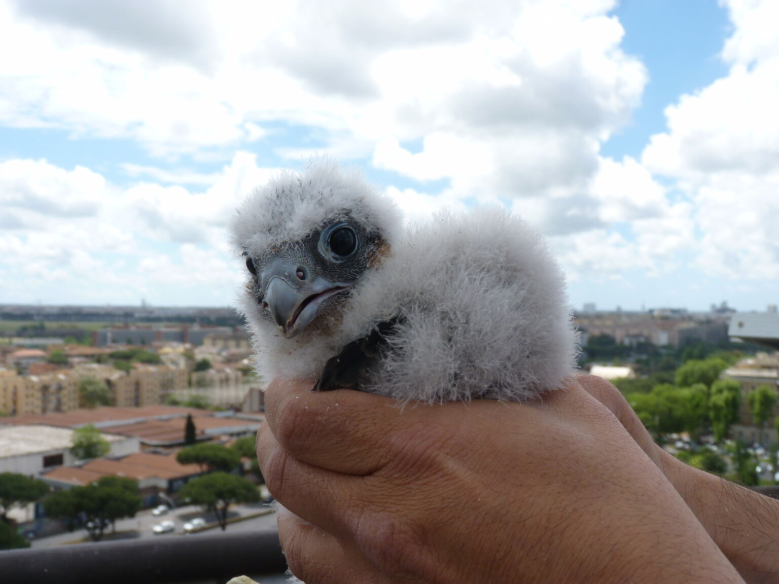 A inizio dello scorso marzo, uno degli addetti al servizio di vigilanza antincendio aveva notato alcune uova sotto a uno dei pannelli solari installati sul tetto dell’edificio regionale. Allertati, i tecnici naturalisti e gli ornitologi della direzione regionale Ambiente, Cambiamenti climatici e Transizione energetica e Sostenibilità, Parchi confermavano l’esistenza di quattro uova di falco pellegrino. Per giorni una fotocamera ha ripreso l’attività della coppia di rapaci fino a quando è nato il piccolo falco. Il 6 maggio, i tecnici naturalistici della Regione Lazio e gli ornitologi di Ornis Italica sono saliti nuovamente sul tetto delle Giunta per l’inanellamento del pullo. Grazie alla rilevazione delle misure biometriche è stato possibile stabilire con certezza che si tratta un maschio. Il piccolo Enea, a tre settimane dalla nascita, pesa 580 grammi. L’inanellamento a scopo scientifico è una tecnica che permette di ottenere informazioni utili per lo studio e la conservazione dei volatili. Durante questa attività, consistente nell’applicazione su una zampa di un anello con un codice alfanumerico unico che consente di identificare l’individuo per tutta la vita, i tecnici, in pochi minuti, riescono a rilevare i dati biometrici e verificare lo stato di salute generale.