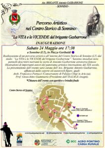 Sabato 24 Maggio 2025 nel centro storico di Sonnino verrà inaugurato un Percorso Artistico : “La VITA e le VICENDE del brigante Gasbarrone”; saranno installati nove pannelli descrittivi narranti la storia di Antonio Gasbarrone attraverso famose illustrazioni di importanti autori del panorama artistico internazionale del XIX secolo tra cui Bartolomeo Pinelli ed Edward Lear.