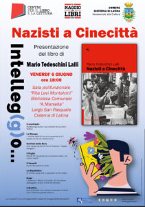 Penultimo appuntamento de “Il Maggio dei Libri” a Cisterna domani, venerdì 6 giugno alle ore 18:00 nella Biblioteca comunale, con un libro che ha fatto molto parlare e scrivere sulla stampa nazionale. Si tratta di “Nazisti a Cinecittà” di Mario Tedeschini Lalli che, da una scoperta casuale a cui ha fatto seguito una lunga ricerca tra carte di servizi segreti, cineteche, archivi privati e interviste a famigliari, racconta una vera storia davvero singolare.