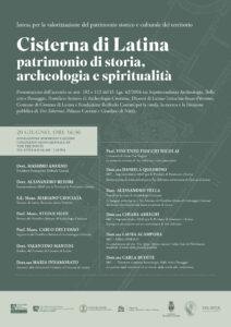 “Cisterna di Latina, patrimonio di storia, archeologia e spiritualità”. Questo il titolo dell’evento che si terrà domani, venerdì 20 giugno a partire dalle ore 16.30 nella Sala Gelasio Caetani, presso il Complesso Monumentale di Tor Tre Ponti sede della Fondazione Roffredo Caetani, per la presentazione dell’accordo tra Soprintendenza Archeologia, Belle Arti e Paesaggio delle province di Frosinone e Latina, il Pontificio Istituto di Archeologia Cristiana, la Diocesi di Latina, Terracina, Sezze e Priverno, il Comune di Cisterna di Latina e la stessa Fondazione, per la ricerca e la fruizione pubblica di Tres Tabernae, Palazzo Caetani e del Giardino di Ninfa.