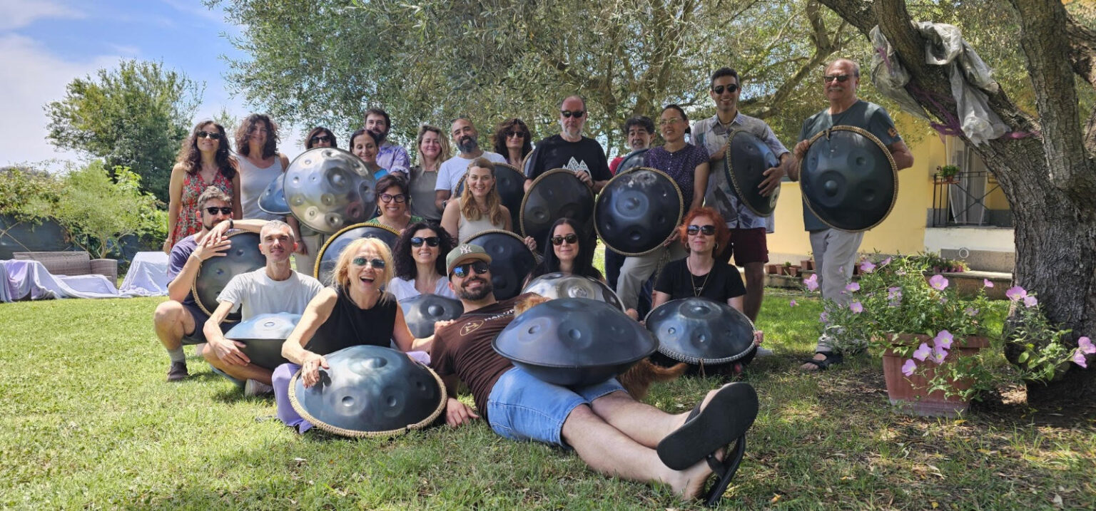Tra Caruso, dal temperamento esplosivo, e Bertelli, più ironico nasce una collaborazione capace di far germogliare un universo sonoro inedito. Dalle mani, che accarezzano il metallo senza colpirlo, sgorgano melodie che sembrano respirare con chi le suona. E diventa magia. Il ritmo scorre come battito cardiaco e la musica diventa cura, connessione, armonia. Neanche il lockdown da pandemia ha fermato il percorso dei due artisti. Mentre Bertelli continuava a lavorare in solitaria nel suo laboratorio, Caruso trasformava le sue lezioni in corsi online, fondando poi la Handpan School Roma oggi punto di riferimento per appassionati di ogni età. Un progetto che ha generato una vera e propria famiglia musicale a distanza, pronta poi a ricompattarsi e a suonare immersa in ambienti naturalistici urbani e non solo. Un gruppo che ha saputo farsi anche orchestra, diretto dalla maestria di Caruso. E così è nato un sogno: portare l’handpan al grande pubblico. È da qui che prende forma il Rome Handpan Fest, organizzato da Caruso e Bertelli. Il primo festival romano dedicato a questo strumento straordinario. La prima edizione, nel luglio 2024 al Parco Laurentino, è stata un successo anche oltre le aspettative, con ospite d’eccezione Nadishana, virtuoso dell’handpan e protagonista di una masterclass e un concerto indimenticabili.