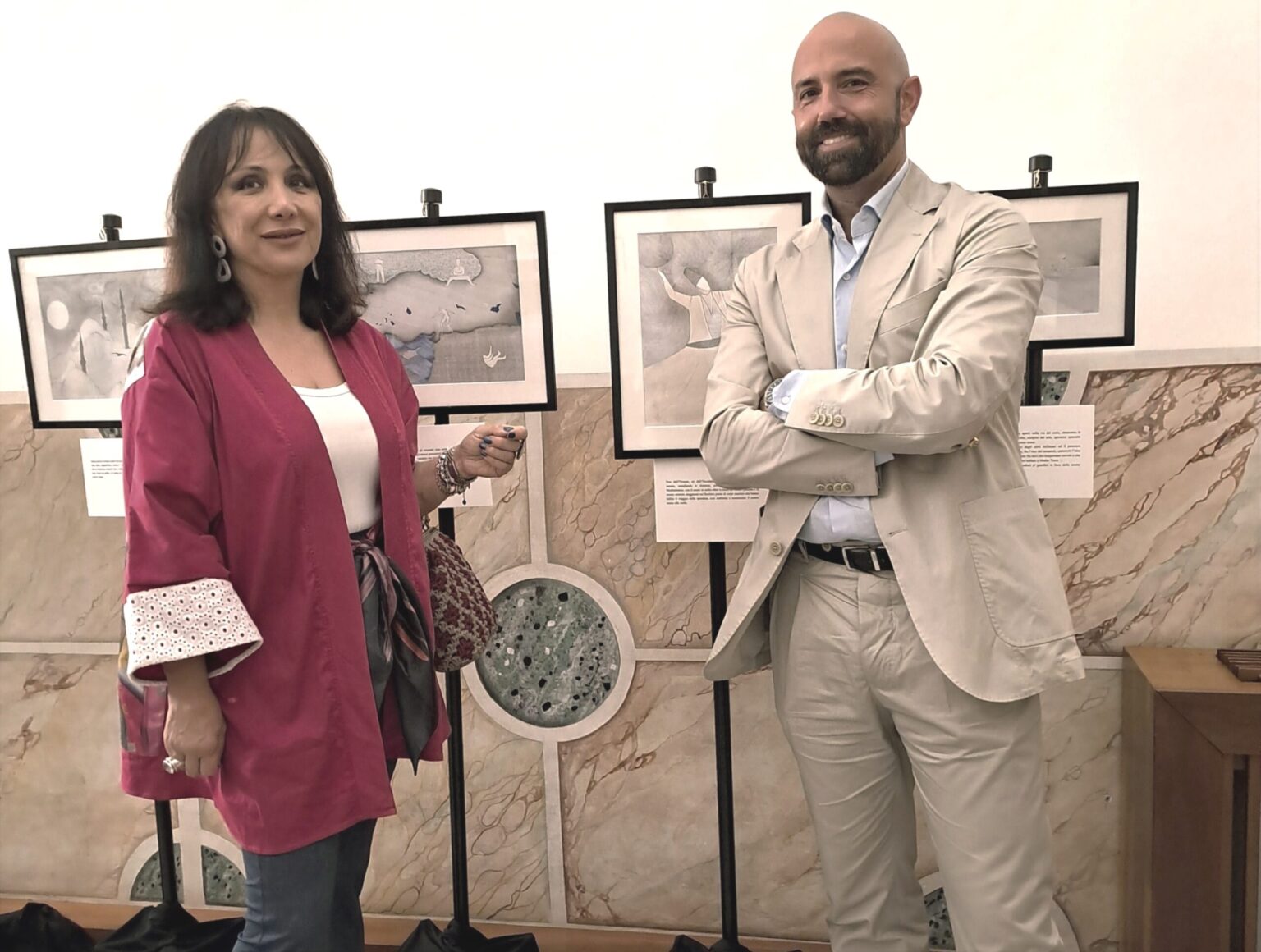 Si è tenuto lunedì 28 luglio il vernissage di apertura della mostra di Davide Cufaro Petroni “My Name is East, My Name is West”. Nella splendida Sala della Pace di Palazzo Valentini a Roma, fino all’11 agosto sarà possibile ammirare l’esposizione dei disegni dell’artista pugliese, patrocinata dall’Assessorato alla Cultura di Roma Capitale. Curata da “Spazio Art D’Or” con l’organizzazione di Marina Corazziari e di Gisella Peana, quest’ultima ne ha curato anche l’ufficio stampa, e promossa dal Consigliere della Città Metropolitana di Roma Capitale, Antonio Giammusso, l’esposizione si prefigge di offrire un’esperienza artistica e culturale di primissimo piano. Con una tecnica minimalista e l’uso di matite l’artista rivela un grande talento e una spiccata sensibilità artistica che non si concretizza in semplici virtuosismi nel tratto ma scandaglia l’anima di un Levante che vive ancora nel ricordo di fasti lontani e di una civiltà raffinatissima e meticcia. Si tratta di un suggestivo percorso visivo nella linea di confine tra Oriente e Occidente, mare e cielo, che Davide Cufaro Petroni è solito solcare nelle sue rotte come pilota di linea. L’artista pone particolare enfasi sulla città di Istanbul e la sua architettura, luogo di grande fascinazione e di ispirazione per l’immaginario onirico e sulle figure ieratiche dei danzatori sufi, i mistici islamici che cercano il contatto con il trascendente attraverso un movimento vertiginoso e ipnotico. Non manca un accenno alla tragedia di Gaza, ferita aperta del Medio Oriente, che l’artista rappresenta come un non-luogo nel quale l’umanità respinta si aggrappa disperata. Le immagini vengono replicate nella sala attigua con un trailer di immagini e prosa poetica realizzato dall’artista stesso, confermando la sua versatilità e l’amore per le arti. Gli invitati sono stati accolti da un raffinato cocktail di benvenuto con la degustazione dei pregiati vini “Mare di Puglia”, prodotti nelle vigne sul mare di Trani dall’imprenditrice Anna Laura D’Alessio, accompagnati da selezioni di prodotti tipici locali. “My Name is East, My Name is West” è un viaggio nella condizione del viaggiatore dell’anima, colui che non può fermarsi perché sospinto dalla conoscenza, e che ritrova nella contraddizione di un mondo enigmatico e solenne la ricomposizione dell’equilibrio tra gli opposti. Una dimensione spirituale affine allo spirito del nostro Mediterraneo, crocevia di civiltà, religioni, filosofie che ci appartengono: non una semplice visione “orientalista” e modaiola ma un’esperienza autentica che ci appartiene da millenni. La mostra è stata organizzata da “Spazio Art D’Or”, ETS che si occupa della promozione delle eccellenze italiane nell’arte, nella moda, disegn e gioielli fondata da Marina Corazziari, jewels designer, dall’architetto Guido Corazziari e dal couturier Gian Piero Cozza. L’altro partner d’eccellenza dell’evento è “Cultura e Armonia”, associazione pugliese che sostiene le arti, la cultura e la formazione. In sinergia con gli ideali e le visioni di Spazio Art D’Or si configura non solo come associazione di promozione sociale ma come un autentico laboratorio di idee. La sua nascita è frutto della visione lungimirante dell’imprenditore-filantropo Emanuele Ventura e di Giovanna Giannandrea, fondatori di “Apulia Symphonic Orchestra”, la prima e più grande Banda musicale d’Europa.