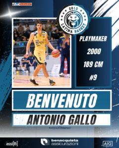 La Benacquista Assicurazioni Latina Basket è lieta di comunicare ufficialmente di aver stipulato un accordo di collaborazione con l’atleta Antonio Gallo, playmaker classe 2000, per 189 cm di altezza e 83 kg di peso. Il giovane regista napoletano arriva dalla Serie A2, dove nella passata stagione ha vestito la maglia della Reale Mutua Torino, chiudendo il campionato con una media di 4.6 punti, 1.3 rimbalzi e 1.8 assist in 13 minuti di utilizzo nelle 31 partite disputate.