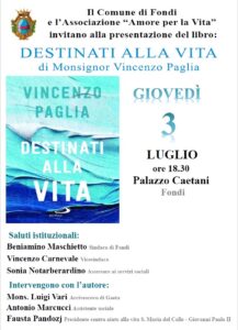 Saranno presenti e interverranno, oltre all’autore, il sindaco di Fondi Beniamino Maschietto, gli assessori alla Cultura Vincenzo Carnevale e ai Servizi Sociali Sonia Notarberardino, l’assistente sociale Antonio Marcucci che ha fortemente voluto l’evento e curato gli aspetti organizzativi e Fausta Pandozj, presidente del centro aiuto alla vita Santa Maria del Colle – Giovanni Paolo II.