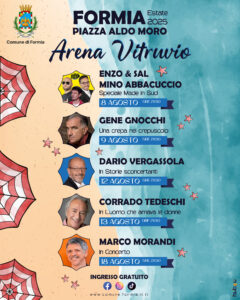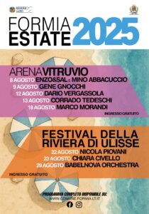 “Abbiamo costruito un cartellone che riflette l’identità di Formia: accogliente, colta, vivace – ha sottolineato l’Assessore al Turismo, Giovanni Valerio – L’obiettivo è promuovere una proposta turistica culturale di qualità, accessibile a tutti, con artisti di primo piano, spazi riqualificati e una forte connessione con il nostro paesaggio e la nostra storia. Formia è pronta a diventare un punto di riferimento per l’estate del Lazio e del Sud Pontino”.