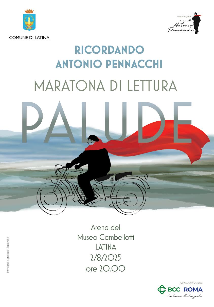 L’evento, intitolato “Ricordando Antonio Pennacchi – Maratona di lettura di Palude”, si terrà sabato 2 agosto a partire dalle ore 20.30 presso l’Arena Cambellotti di Latina. Da lì, la maratona proseguirà simbolicamente verso il pontile di Capo Portiere e si concluderà in viale Pennacchi, sul lungomare di Latina, luogo che già porta il suo nome e il suo ricordo.