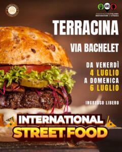 L’International Street Food, la manifestazione itinerante più seguita e apprezzata d’Italia, fa tappa a Terracina con la 64ª tappa della 9ª edizione. Dal 4 al 6 luglio 2025, via Bachelet si trasformerà in un grande villaggio gastronomico a cielo aperto, dove sarà possibile vivere un’esperienza unica all’insegna del gusto, della convivialità e dell’incontro tra culture.