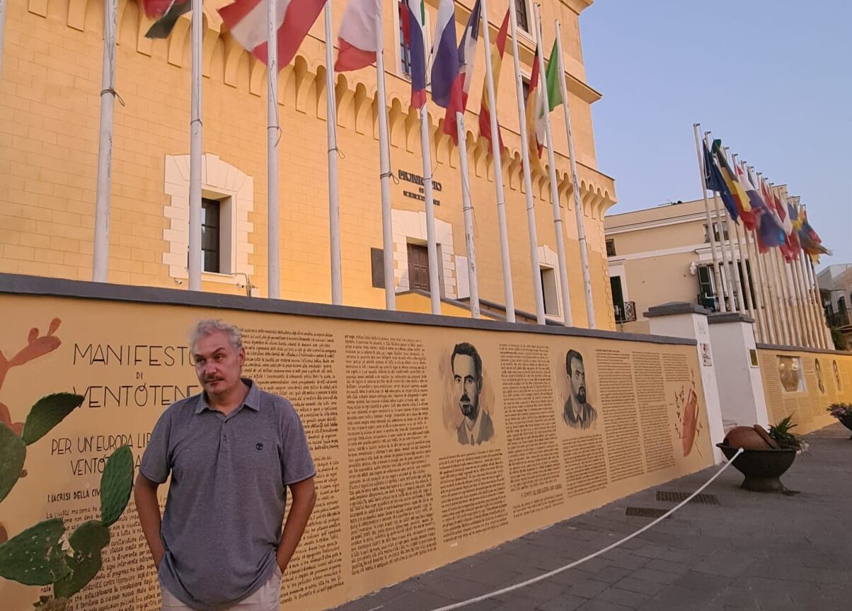 La visita del filosofo Filippo Cannizzo, impegnato attualmente tra gli altri a portare avanti il progetto Unesco ResiliArt for PEACE, apre a nuovi progetti legati all’isola, ed è un’esortazione a tutti quanti gli italiani affinché rimangano vigili in difesa della democrazia contro le derive contemporanee che mettono in pericolo le libertà e i diritti. Siamo un popolo dalla memoria assai corta, che dimentica facilmente gli errori e i sacrifici compiuti dalle generazioni che ci hanno preceduto, e l’isola di Ventotene lascia insegnamenti senza scadenze temporali che parlano anche a noi, con grande attualità, come sollecitazione a difendere la libertà e la democrazia nel clima di odio e di guerra, di competizione e di discriminazioni del presente; per questo, la visita di Cannizzo sembra quasi un grido di pace, bellezza, gentilezza, che pare risuonare dall’isola pontina fino al Bel Paese, all’Europa (e oltre), perché, come scrisse Altiero Spinelli, anche se “la strada da percorrere non è facile né sicura, ma deve essere percorsa”.