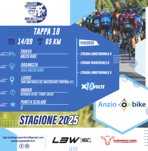 “Proseguiamo con la diciottesima tappa che si svolgerà nella zona industriale di Mazzocchio su un circuito ben collaudato e che è spesso teatro di qualche tappa del Giro dell’Agro Pontino – commenta la Commissione Ciclistica Opes – La gara è organizzata da Leano Colaceci, presidente della Asd Anzio Bike e l’appuntamento è per domenica mattina, per un’altra bella sfida tra ciclisti”.