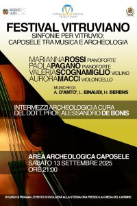 Una serata speciale, in cui la musica incontra la storia e l’archeologia nel cuore di uno dei luoghi più suggestivi di Formia. Sabato 13 settembre, alle ore 21:00, l’Area archeologica di Caposele ospiterà il concerto dal titolo “Sinfonie per Vitruvio: Caposele tra musica e archeologia”, un evento di grande eleganza artistica inserito nel programma del Festival Vitruviano, promosso dal Comune di Formia.