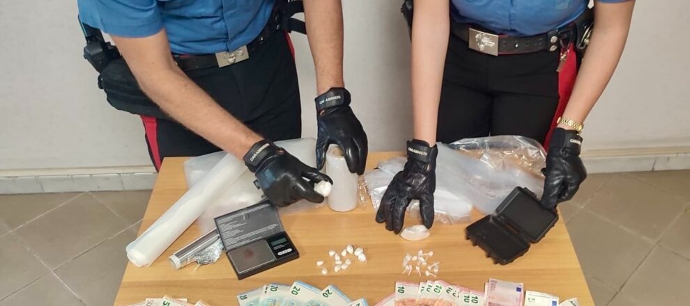 All’interno dell’appartamento la scoperta: in cucina, nascosti in un vaso, sono stati rinvenuti 30 grammi di cocaina e 36 di crack già divisi in dosi, insieme a materiale per il confezionamento e 650 euro in contanti, ritenuti frutto dell’attività di spaccio.
