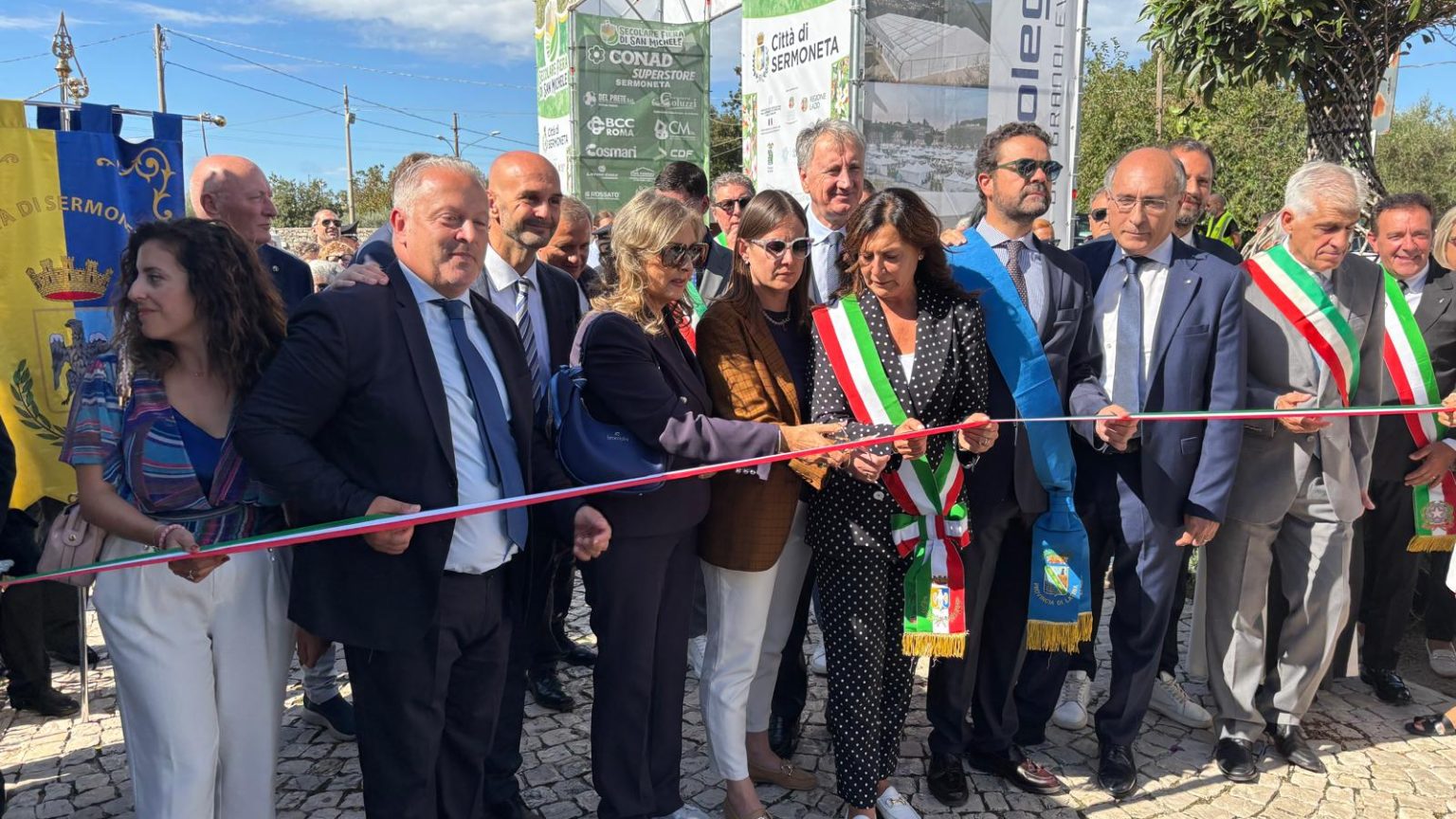 È stata inaugurata l’edizione 2025 della secolare Fiera di San Michele a Sermoneta, con il taglio del nastro alla presenza del prefetto di Latina Vittoria Ciaramella, i rappresentanti di Provincia (con il consigliere provinciale Pierluigi Torelli, nella doppia veste anche di presidente del consiglio comunale delegato alla cultura di Sermoneta), Regione (con i consiglieri regionali Vittorio Sambucci, in rappresentanza dell’assessore regionale Giancarlo Righini, ed Enrico Tiero che ha portato i saluti del presidente della Regione Francesco Rocca), Parlamento (con il senatore Nicola Calandrini) ed Europarlamento (con il parlamentare europeo Nicola Procaccini), l’amministrazione comunale di Sermoneta al gran completo, le associazioni, e tanti cittadini che non sono voluti mancare al momento istituzionale, aperto con l’esecuzione dell’inno d’Italia da parte della banda musicale Fabrizio Caroso di Sermoneta.