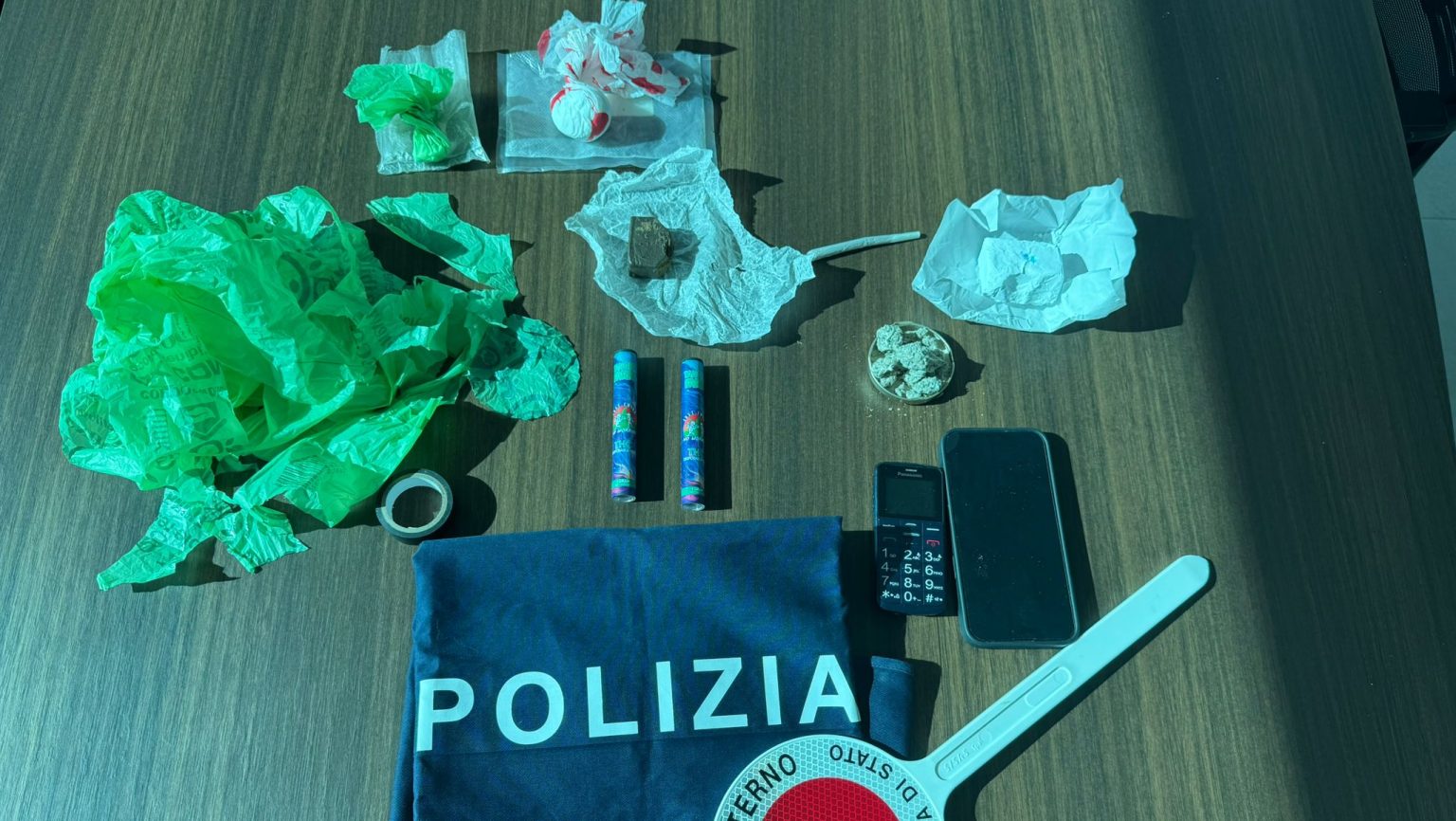 Gli agenti della Squadra Anticrimine del Commissariato hanno eseguito una perquisizione presso l’abitazione della donna. Durante il controllo, i poliziotti hanno rinvenuto due sigarette elettroniche riportanti la dicitura “THC”, circa 29 grammi di hashish, 6 grammi di marijuana, oltre 30 grammi di polvere bianca presumibilmente cocaina e vario materiale per il confezionamento delle dosi, tra cui nastro isolante, ritagli di plastica e sostanze da taglio.