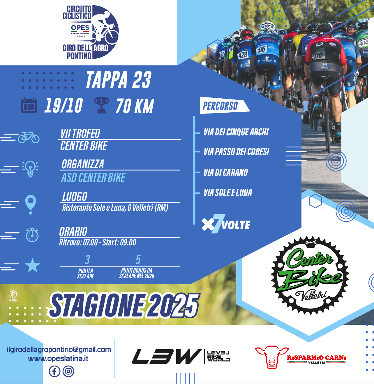 Domenica 19 ottobre si torna in pista con la 23esima ed ultima tappa del circuito ciclistico Opes Giro dell’Agro Pontino, stagione 2025.