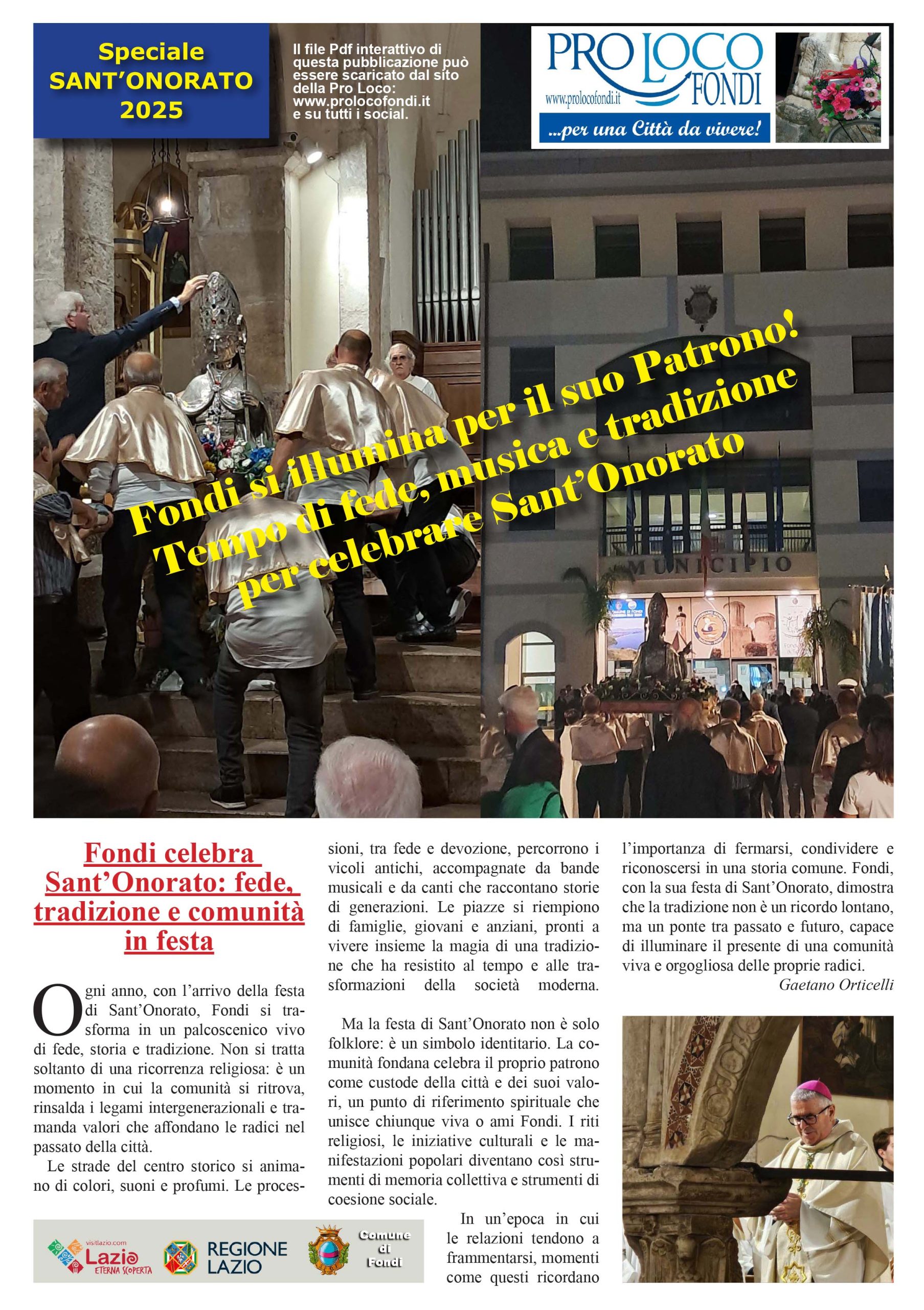 L’Associazione Pro Loco Fondi annuncia la pubblicazione dello Speciale Sant’Onorato 2025, realizzato con il patrocinio della Regione Lazio – VisitLazio Eterna Scoperta, del Comune di Fondi e in collaborazione con il Duomo di San Pietro Apostolo a Fondi.