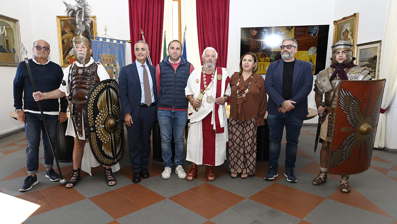 A rendere ancor più suggestiva la presentazione è stata una scena dal forte impatto simbolico: tre figure emblematiche dell’antica Roma – un senatore, un legionario e un pretoriano – hanno fatto solenne ingresso nella sala, avvolti nei loro abiti storici e accompagnati da frasi solenni, degne della tradizione romana. Un’apparizione scenografica e carica di fascino, che ha idealmente abbattuto le barriere del tempo, riportando per un istante i presenti nel cuore dell’Urbe eterna.