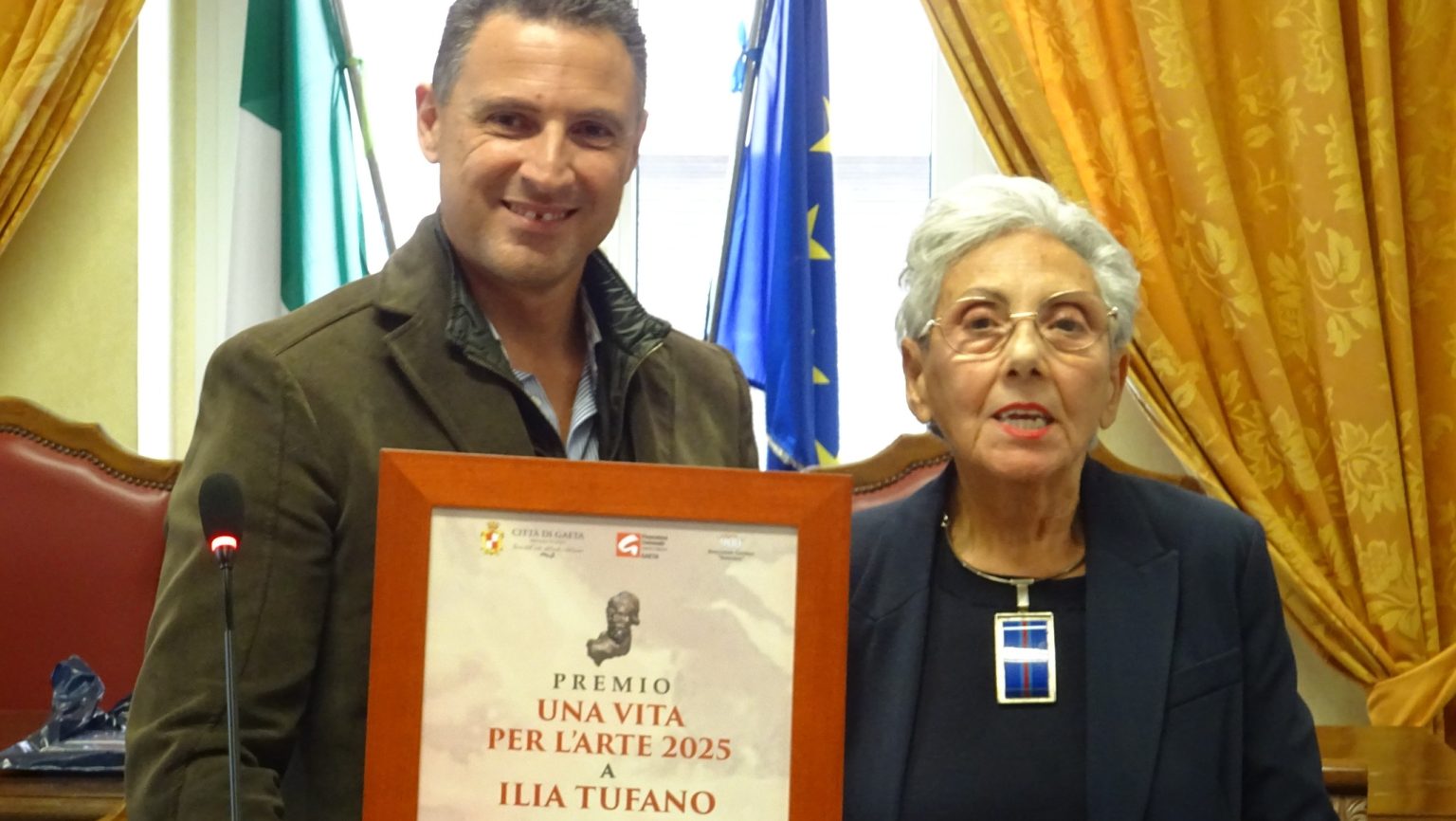 L’ aula consiliare del Comune ha ospitato la XXII edizione del Premio “Una vita per l’Arte”, il riconoscimento che la Città di Gaeta assegna a personaggi che hanno dedicato la propria vita alla diffusione della Cultura e dell’Arte, in particolare distinguendosi per i loro risultati artistico-culturali ma anche per statura morale e umana. Quindi non solo per le loro capacità professionali e mediatiche, ma per aver saputo trasmettere con stile, altruismo e amore il loro saper fare. Quest’anno il Premio è stato attribuito a Ilia Tufano, artista, e donna di profonda cultura. «Con gioia ma anche emozione ho avuto il piacere di assegnare ad Ilia Tufano questo significativo riconoscimento, un Premio istituito nel 2004 dal comune di Gaeta in collaborazione con l’Associazione Culturale Novecento– ha evidenziato il sindaco Cristian Leccese – La città, nell’ambito delle attività culturali, individua annualmente un personaggio che ha dedicato la sua vita all’arte, distinguendosi per i risultati ottenuti, il rigore della ricerca, il contributo nella divulgazione dell’arte e la statura morale. La nostra è un’iniziativa pensata per far sì che Gaeta si distingua per la sua sensibilità verso l’arte e il pensiero. Vengono premiati coloro che, con una costante e profonda attività culturale e artistica, hanno saputo imprimere un segno duraturo, offrendo al contempo un insegnamento fondamentale alle nuove generazioni. Esprimo le mie congratulazioni ad Ilia Tufano, donna di elevata cultura che ha avuto ed ha tuttora un rapporto di assoluta simpatia e apprezzamento per la città di Gaeta e di sincero affetto per la nostra Pinacoteca e per il Porticato Gaetano a cui ha partecipato come artista in tante edizioni e per il quale negli ultimi anni è stata membro di giuria. Una signora dell’arte di altri tempi, come giustamente è stata definita».