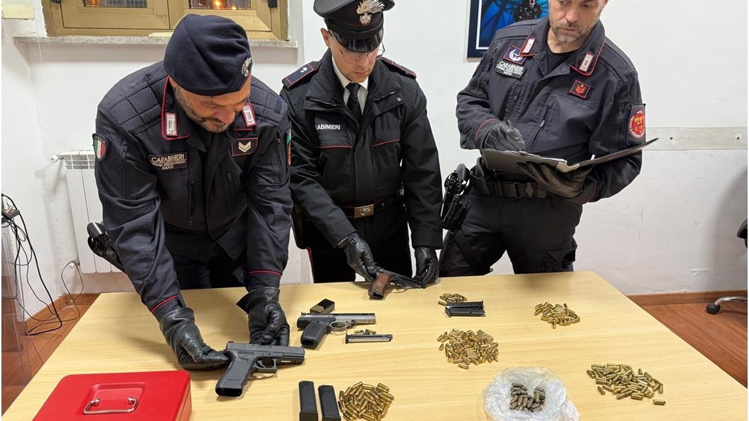 Nella giornata del 17 ottobre, i Carabinieri del Comando Provinciale di Latina, con il supporto della Squadra d’Intervento Operativo del 10° Reggimento Carabinieri “Campania”, hanno eseguito un servizio straordinario di controllo del territorio, denominato “Alto Impatto”, finalizzato alla prevenzione e al contrasto della criminalità diffusa e del traffico di sostanze stupefacenti. Nel corso delle attività, i militari hanno arrestato due uomini di 48 e 32 anni, entrambi residenti a Latina e già noti alle forze dell’ordine, ritenuti responsabili di detenzione di arma clandestina, detenzione illegale di armi e munizioni e ricettazione. Durante un controllo in via Pionieri della Bonifica, i Carabinieri hanno fermato un cittadino albanese di 32 anni, trovato in possesso di 1,28 grammi di hashish e di una modica quantità di cocaina. L’uomo è stato segnalato alla Prefettura di Latina quale assuntore di sostanze stupefacenti.Nel corso della perquisizione, i militari hanno notato un altro uomo che, alla loro vista, si affrettava a entrare nella stessa palazzina e a salire le scale. Insospettiti, i Carabinieri lo hanno seguito fino all’appartamento in cui si era rifugiato. All’interno dell’abitazione, dove si trovavano entrambi gli indagati, è scattata una perquisizione domiciliare che ha portato al rinvenimento, legato alla ringhiera del terrazzo, di uno zaino contenente: una pistola calibro .22 con matricola abrasa e caricatore inserito con 9 cartucce; una pistola calibro 7,65 con caricatore inserito (14 cartucce), un secondo caricatore vuoto, risultata rubata in un’abitazione a Campobasso il 1° luglio 2018; una pistola calibro 9 con due caricatori e 33 cartucce, anche questa rubata in un’abitazione a Roma, nel quartiere Garbatella, nel settembre 2022. Nel corso della stessa operazione, i Carabinieri hanno trovato in un armadio della camera da letto una cassetta metallica contenente 24 cartucce calibro 9 parabellum, 31 cartucce calibro 9, 19 cartucce calibro .22, 137 cartucce calibro 7,65.Tutto il materiale è stato sottoposto a sequestro. Le armi saranno sottoposte ad accertamenti balistici per verificare un eventuale utilizzo in episodi delittuosi, mentre la sostanza stupefacente verrà analizzata per determinarne la natura e la quantità. Nel corso dello stesso servizio, sono stati inoltre segnalati alla Prefettura di Latina un 43enne del posto e un 19enne cittadino indiano residente a Pontinia, entrambi già noti alle forze dell’ordine, trovati in possesso di modiche quantità di hashish durante controlli a piedi. Complessivamente, l’operazione ha impegnato 14 militari e 6 autovetture, con il controllo di 38 persone e 15 veicoli, l’esecuzione di 8 perquisizioni e la verifica di 6 soggetti sottoposti a misure restrittive presso le rispettive abitazioni.