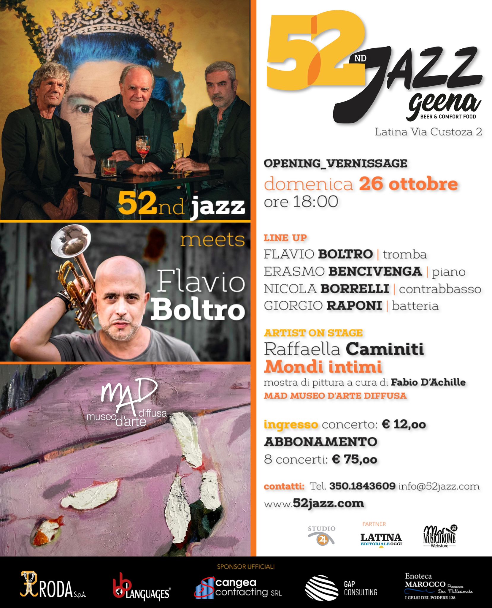 Torna il 52nd Jazz Winter, una delle rassegne più longeve della scena jazz del Lazio, e lo fa con un esordio di altissimo livello. Domenica 26 ottobre alle ore 18.00 il palco del Geena ospiterà il concerto inaugurale “52nd Jazz meets Flavio Boltro”, un incontro tra uno dei più grandi trombettisti italiani e la resident band composta da Erasmo Bencivenga (piano), Nicola Borrelli (contrabbasso) e Giorgio Raponi (batteria).