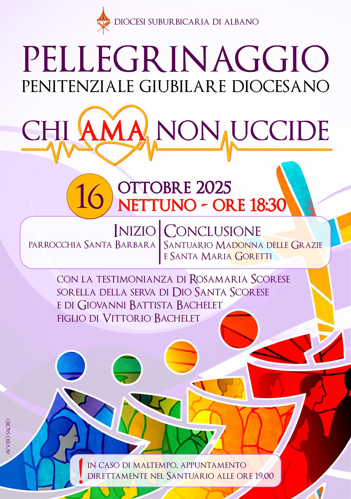 Si terrà giovedì 16 ottobre a Nettuno il pellegrinaggio penitenziale giubilare, organizzato dalla diocesi di Albano come evento peculiare dell’Anno Santo, sul tema “Chi ama non uccide”: un invito profondo a riscoprire la forza dell’amore evangelico come unica via capace di vincere odio e violenza.