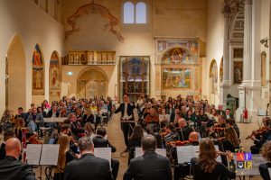 Grande entusiasmo anche per gli appuntamenti che hanno preceduto il concerto finale. Particolarmente partecipato è stato il pomeriggio di sabato 18 ottobre al Complesso Museale di San Francesco a Montefalco, in Umbria, inserito nella cornice dell’inaugurazione della Strada dell’Olio. “È stato davvero strepitoso il pomeriggio a Montefalco – ha raccontato il Maestro Francesco Maria Silvagni, Direttore dell’Orchestra – Un’esperienza intensa, emozionante e autentica, resa possibile grazie alla calorosa accoglienza delle istituzioni locali. Desidero esprimere il mio più sentito ringraziamento all’Assessore Francesco Vannicelli, che, insieme alla presidente della Pro Loco, ha fortemente voluto la nostra presenza, ha aperto la serata con parole di grande sensibilità e partecipazione. Un grazie sincero anche al Sindaco Alfredo Gentili, che ha onorato con la sua presenza questo speciale momento inaugurale. Un ringraziamento particolare va a Chiara Broccatelli, presidente della Pro Loco di Montefalco, e all’Associazione #Amololio, che hanno saputo creare un’atmosfera unica nel suggestivo Chiostro di Sant’Agostino, dove abbiamo condiviso un conviviale e profumato momento di degustazione dell’Olio Nuovo”.