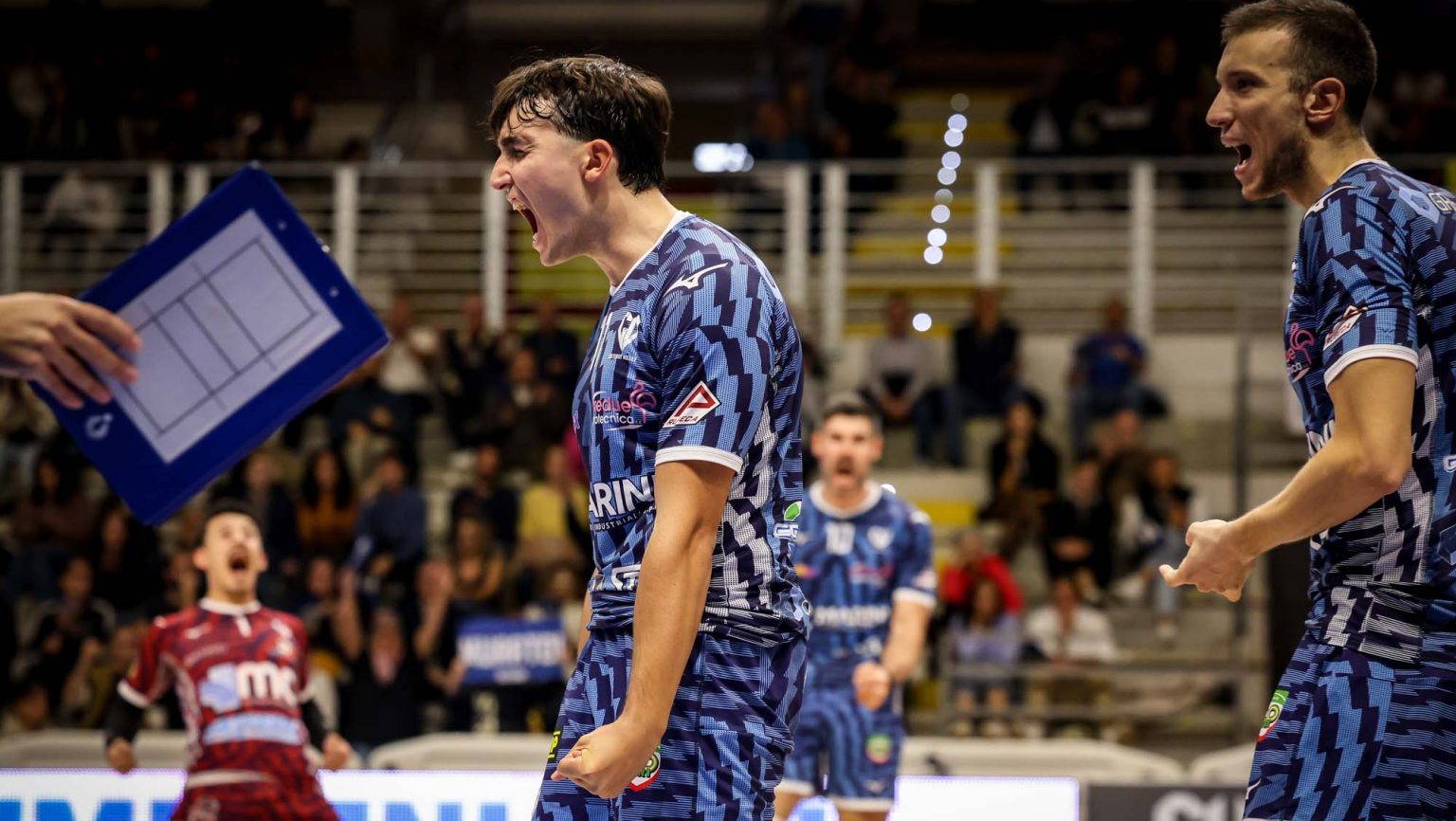 La sfida si accende. Nel terzo set Cisterna parte bene e conduce, tenta la fuga e si porta a + 4 (11-7); Grottazolina è lì, tiene, resta nel set e pareggia: si gioca punto a punto fino al 18 pari. Poi Guzzo (schiacciata), Bayram (ace) e Mazzone (muro) firmano il break decisivo (21-18), al resto ci pensano Lanza e Plak, Cisterna chiude 25-21. Nel quarto set il primo break lo mette a segno Grottazzolina che resta sempre avanti, la squadra marchigiana si porta a +4 (14-18), mantiene il vantaggio e arriva a guadagnarsi quattro set point, Cisterna annulla solo il primo: finisce 22-25, si va al tie-break.