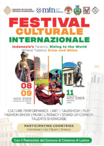 Per due giorni, 8 e 9 novembre prossimi, il pubblico di Cisterna di Latina potrà assistere a spettacoli di arte, musica e danza interculturale durante il “Festival Culturale Internazionale 2025” con l’Indonesia come Paese partner ufficiale.