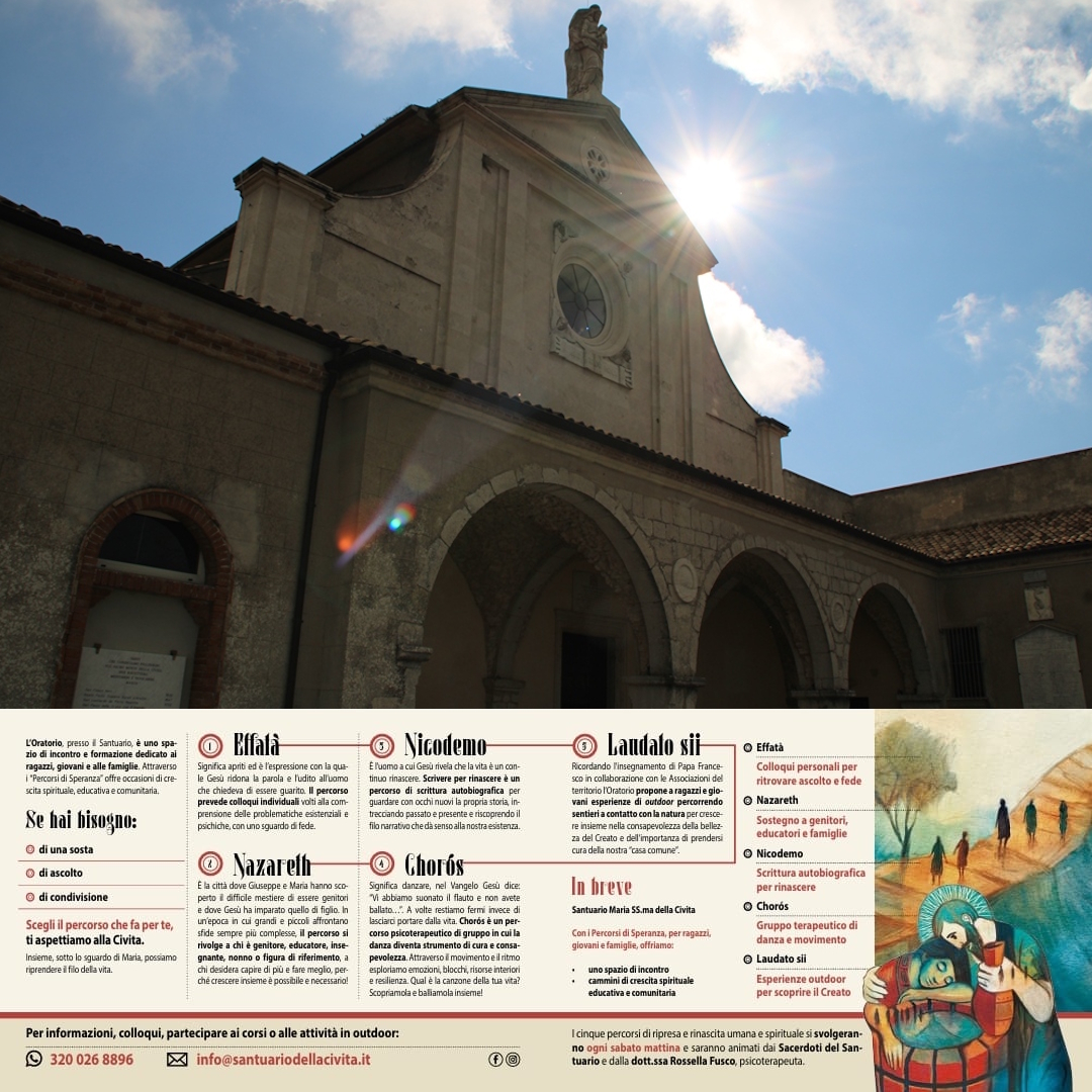 Grazie al finanziamento della Regione Lazio nell’ambito della legge regionale sugli oratori, si va avanti con il progetto presentato del Santuario Maria Santissima della Civita di Itri dal titolo “Percorsi di Speranza”.
