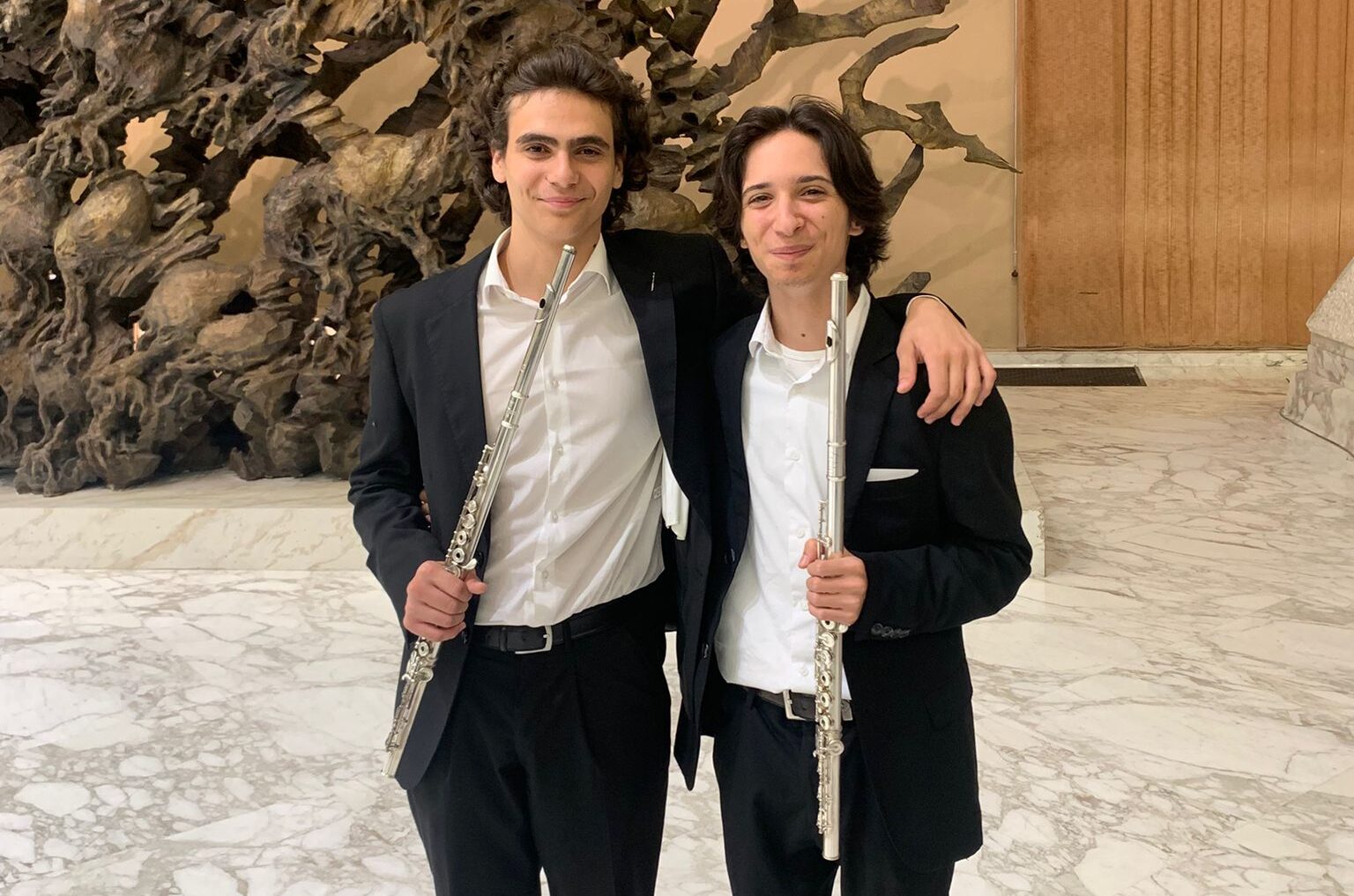 Accanto a lui, Francesco Pica, giovane flautista pontino seguito dal professor Gianni Cellacchi, già vincitore del Primo Premio al Crescendo International Music Competition e protagonista di un’esibizione alla Carnegie Hall di New York. Il suo talento è stato più volte riconosciuto in prestigiosi concorsi come Sette Note Romane, San Vigilio In…Canto, Città di Latina, Severino Gazzelloni e Premio Persichilli dove quest’anno ha conquistato anche il secondo posto assoluto. Il debutto dell’Orchestra Nazionale dei Licei Musicali si è tenuto nella suggestiva Sala Paolo VI dello Stato del Vaticano, in occasione del Giubileo del Mondo Educativo promosso dal Dicastero per la Cultura e l’Educazione.