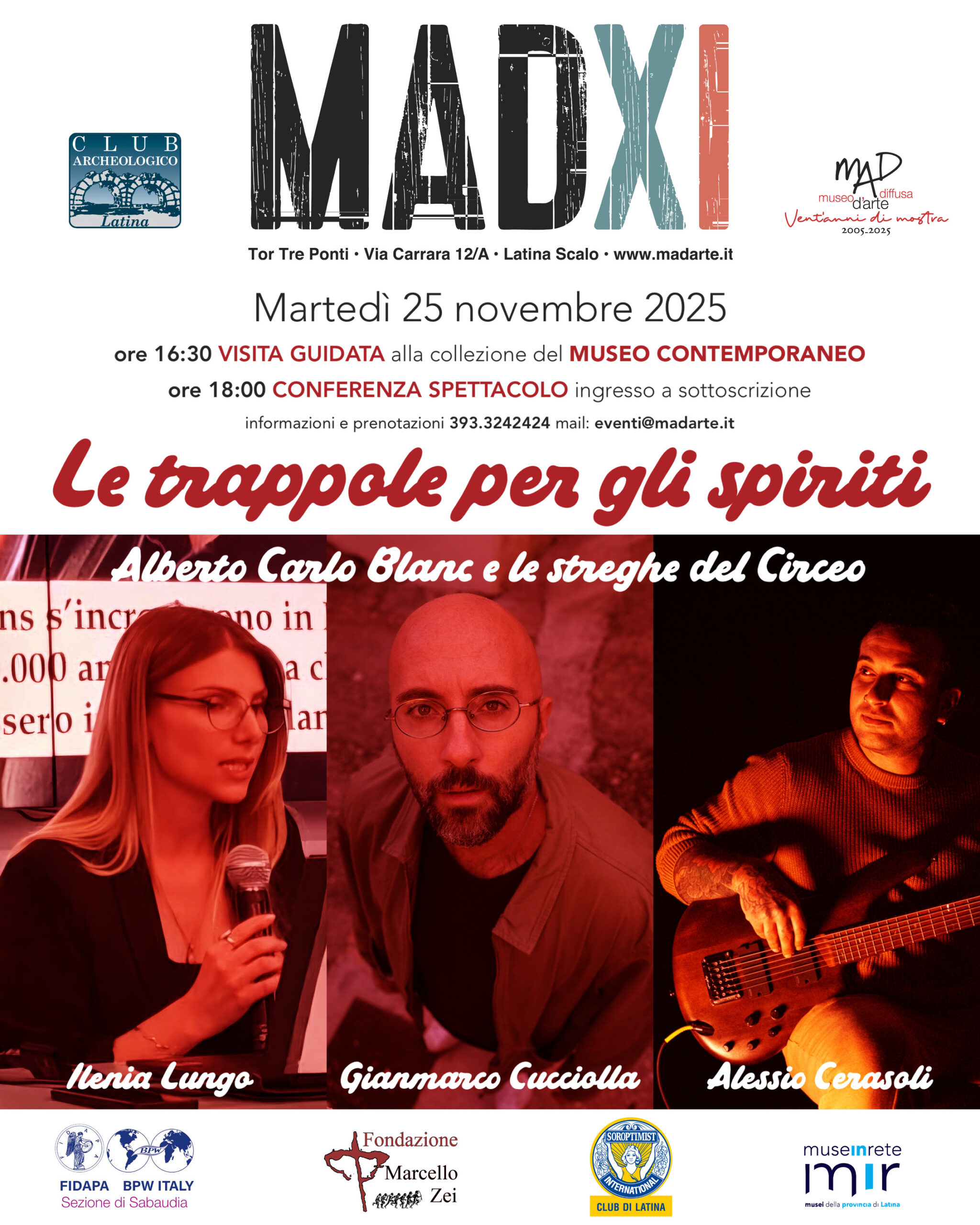 In occasione della giornata internazionale contro la violenza sulle donne, MAD e Club Archeologico di Latina, in collaborazione con la Fondazione Marcello Zei, il Soroptimist International club di Latina, la FIDAPA BPW sezione di Sabaudia e MuseiNrete organizzano un evento artistico culturale a Tor Tre Ponti.
