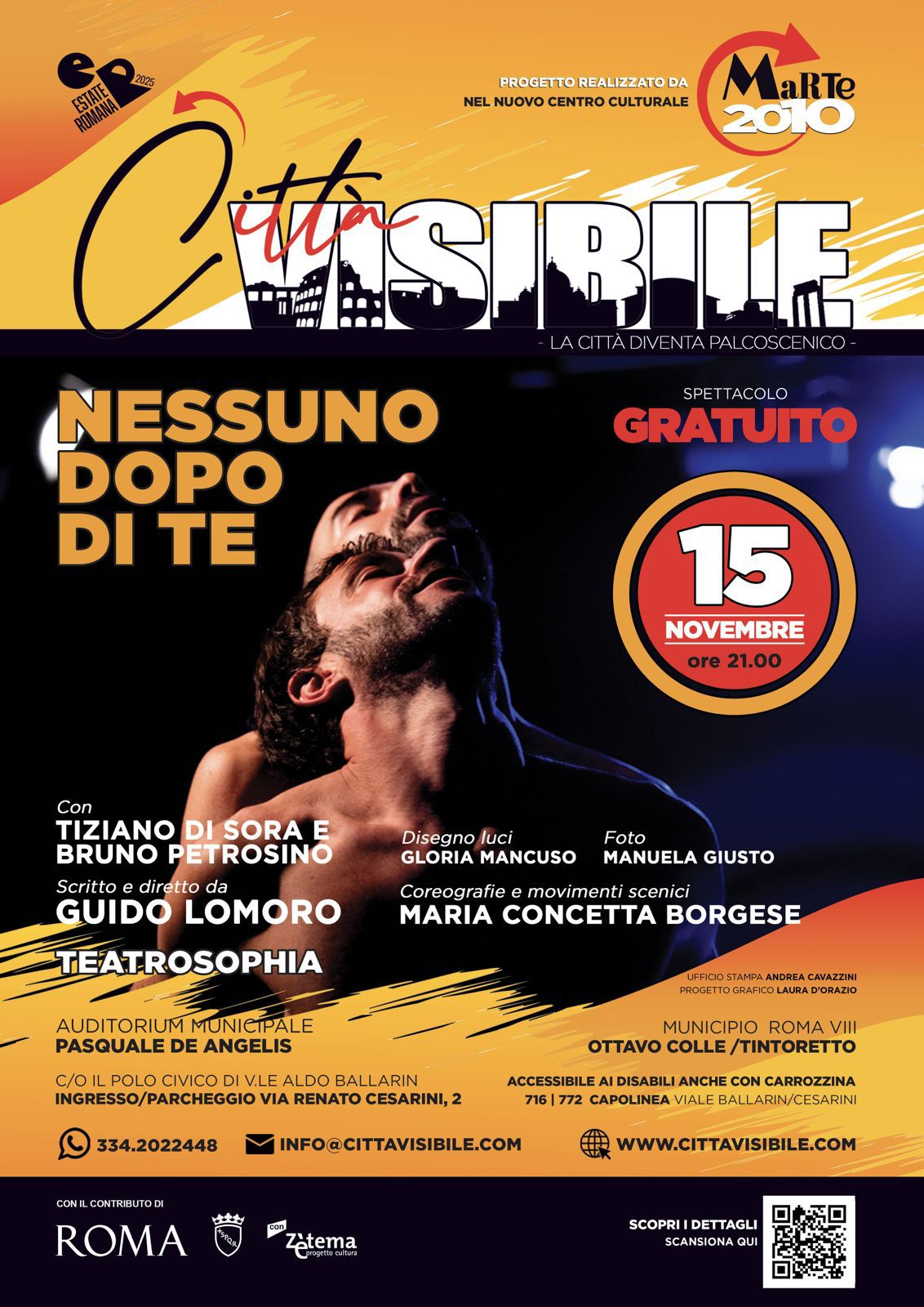 Dopo quattro anni di ininterrotto successo, Nessuno dopo di te torna in scena approdando all’Auditorium Municipale Pasquale De Angelis, in via Aldo Ballarin (VIII Municipio).