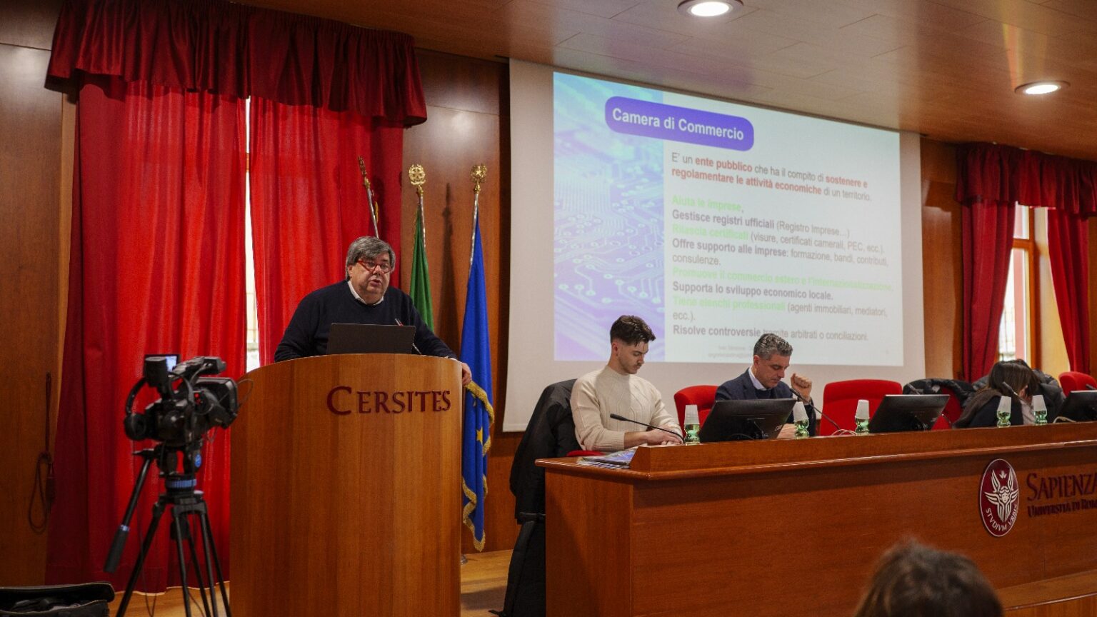 “Fare Impresa, Governare i Cambiamenti” è stato il tema del seminario che si è svolto lo scorso giovedì 4 dicembre presso la Sala Convegni della Facoltà di Economia dell’Università “La Sapienza” di Latina, eccezionalmente messa a disposizione dal Cersites. L’iniziativa, organizzata dalla Confesercenti di Area con il contributo della CCIAA Frosinone–Latina, ha coinvolto oltre duecento studenti dell’Istituto “Vittorio Veneto-Salvemini” con i propri docenti riscuotendo grande interesse. Gli studenti hanno potuto ascoltare e confrontarsi su temi concreti legati all’avvio d’impresa e ai primi passi per creare una propria attività produttiva.