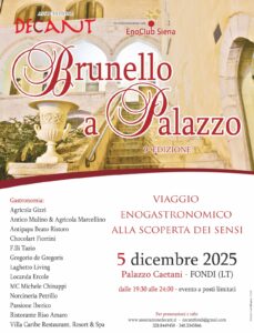 È ufficialmente sold out l’edizione 2025 di Brunello a Palazzo, l’appuntamento firmato Associazione Decant che dal 2015 porta a Fondi il prestigioso Brunello di Montalcino, unendo grandi etichette e alta gastronomia locale.