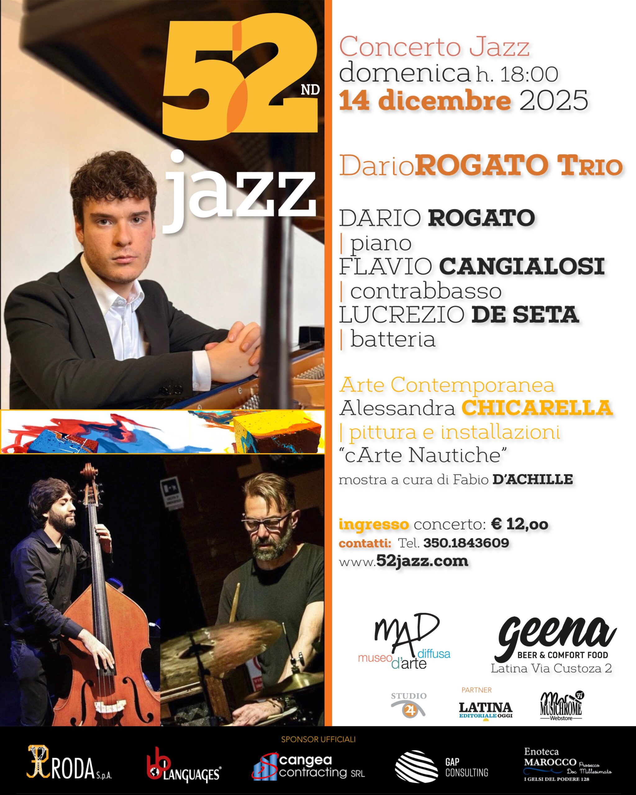 Con il concerto del Dario Rogato Trio, domenica 14 dicembre alle ore 18:00, si conclude al Geena di Latina (Via Custoza 2) la prima parte del 52nd Jazz Winter 2025/2026: la rassegna