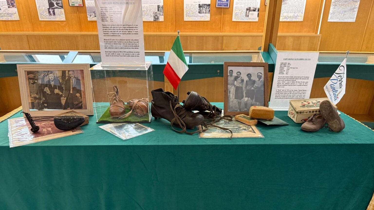 L’associazione culturale sportiva “Terra Pontina” mette in mostra i suoi cimeli al Museo Cambellotti di piazza San Marco. Grazie a un’iniziativa dell’Amministrazione Comunale e grazie al sostegno dell’assessore allo Sport Andrea Chiarato e dell’assessore al Turismo Gianluca Di Cocco, la realtà formata da alcuni appassionati del Latina Calcio, del territorio e della sua storia proporrà fino al 16 dicembre nella sua sezione un percorso dedicato alle origini del Calcio e dello Sport nell’Agro Pontino.