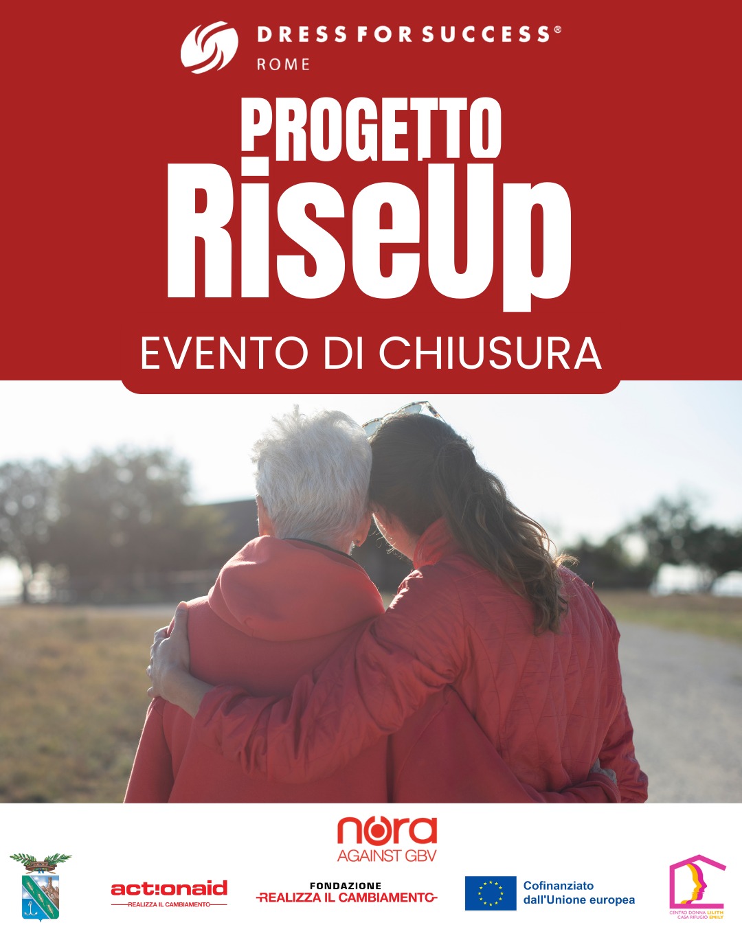 Dress for Success Rome è lieta di annunciare l’evento conclusivo del progetto RiseUp – Rafforzamento dell’Indipendenza Sociale ed Economica per Uscire dalla violenza, realizzato in qualità di ente capofila in partnership con l’Associazione Centro Donna Lilith. RiseUp nasce con l’obiettivo di trasformare le sfide affrontate dalle donne vittime di violenza in opportunità di crescita e rinascita, promuovendo solidarietà, autonomia economica ed empowerment personale attraverso un approccio partecipativo, flessibile e intersezionale. L’iniziativa si inserisce all’interno del Progetto NORA, co-finanziato dall’Unione Europea, dalla Fondazione Realizza il Cambiamento e da ActionAid International Italia E.T.S.