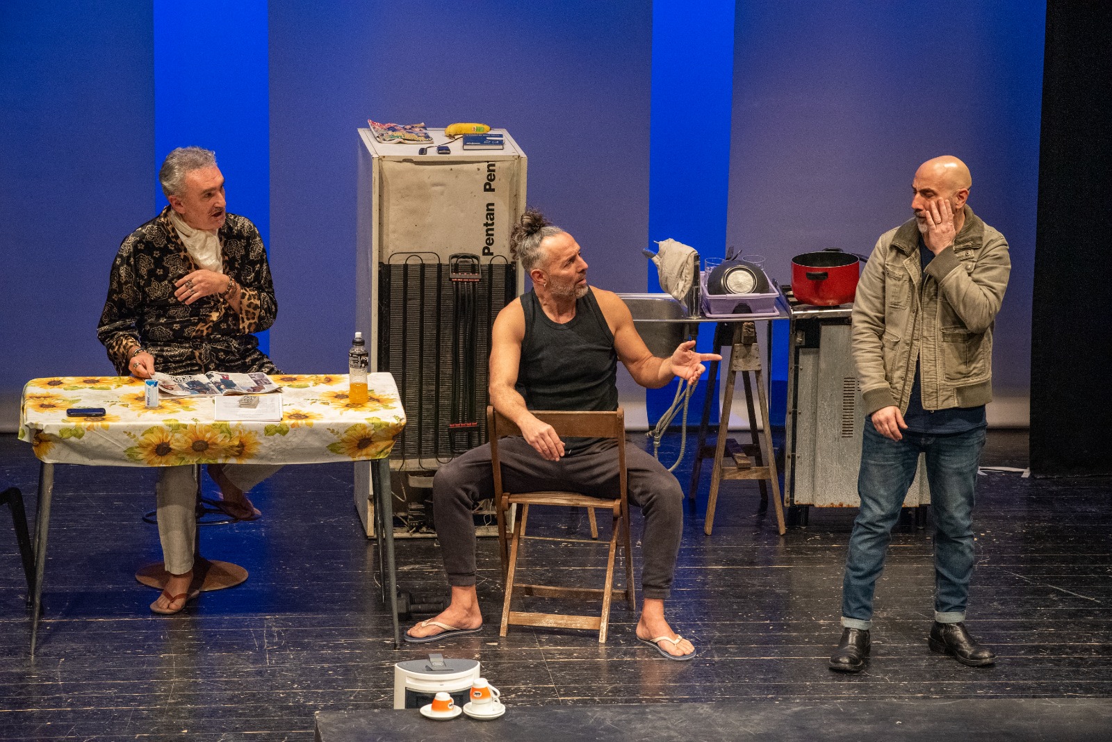 Una commedia brillante che racconta di tre uomini, separati e piuttosto al verde, che dividono un appartamento districandosi tra faccende domestiche, spese al supermercato e una difficile convivenza. I tre casalinghi disperati potrebbero anche riuscire a trovare un equilibrio, se non fosse per il rapporto con le rispettive ex mogli che comunque continua a condizionare le loro vite. L’arrivo di un ospite leggermente instabile in questo precario equilibrio determinerà le condizioni per una serie di divertentissime situazioni. Il tutto condito da un finale a sorpresa.