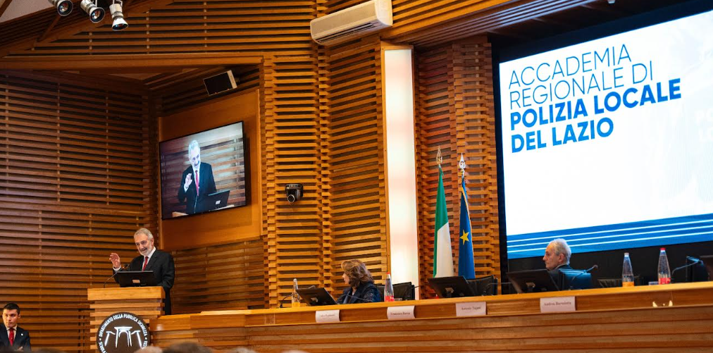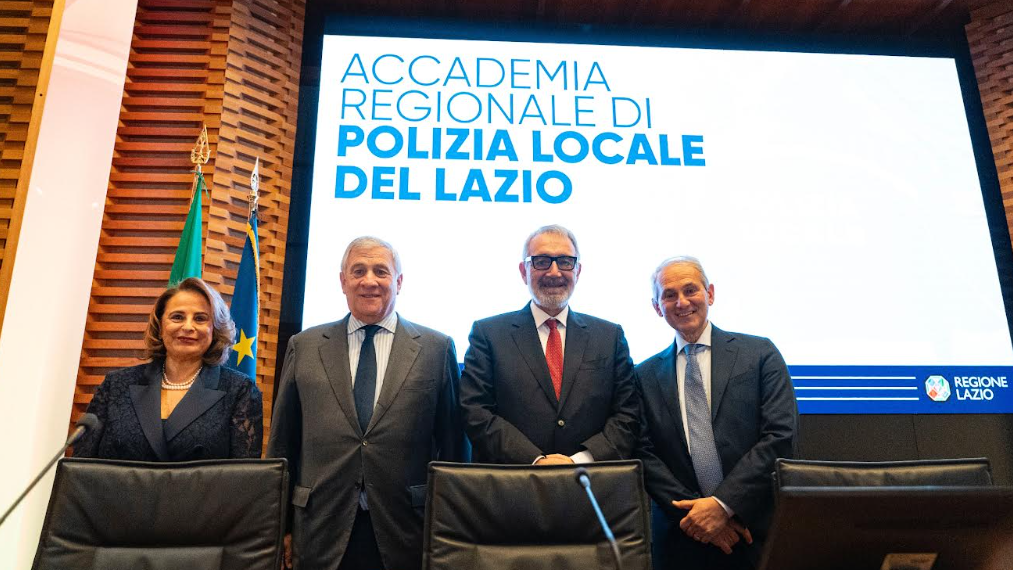 È stata presentata oggi presso la Scuola di perfezionamento delle Forze di Polizia a Roma l’Accademia regionale di Polizia locale del Lazio, la Fondazione di partecipazione che si occuperà della Formazione degli agenti di Polizia locale del Lazio. Alla presentazione hanno partecipato il vicepresidente del Consiglio dei Ministri, Antonio Tajani, il prefetto di Roma Lamberto Giannini, il presidente della Regione Lazio Francesco Rocca, l’assessore regionale al Personale, alla Sicurezza urbana, alla Polizia locale agli Enti locali e all’Università Luisa Regimenti, il presidente dell’Accademia, viceprefetto Andrea Bartolotta. Nel corso dell’evento è stato presentato il programma didattico-scientifico e il logo dell’Accademia.