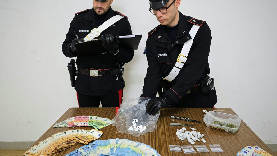 I successivi e approfonditi accertamenti hanno consentito di raccogliere elementi in ordine al coinvolgimento nell’attività illecita del 22enne. Pertanto, i militari hanno eseguito una perquisizione domiciliare nei suoi confronti, che ha permesso di rinvenire circa 10 grammi di cocaina, suddivisi in 24 dosi, e la somma di oltre 7.900 euro in contanti di vario taglio, ritenuta provento dell’attività di spaccio. Parte del denaro è risultata costituita da banconote contraffatte.