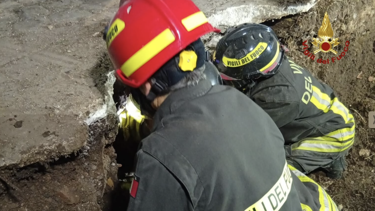 Le operazioni di recupero dell’animale, in buono stato ma spaventato, si sono protratte per diverse ore a causa del poco spazio presente. Per tale scopo si è reso necessario l’utilizzo di un mezzo speciale vvf per movimento terra e attrezzature varie per creare un varco necessario a far uscire l’animale. Successivamente Frodo, questo il nome del cane, è uscito e visitato da un veterinario per poi essere riconsegnato ai proprietari.