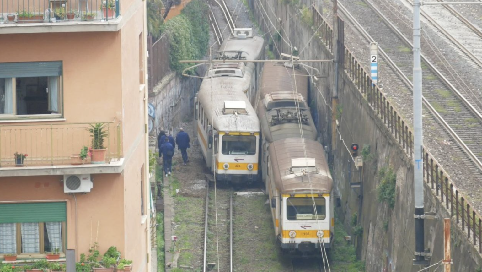 I treni, in marcia in direzioni opposte, si sarebbero ritrovati nello stesso segmento condiviso di circa cinquanta metri e l’impatto avrebbe provocato lo svio di un convoglio, con due vagoni rimasti incastrati. Sembrerebbe possibile escludere la presenza di feriti al momento dell’impatto. I passeggeri sono stati fatti scendere in sicurezza e il servizio è stato sospeso e sostituito da autobus, tramite il potenziamento della linea 105.