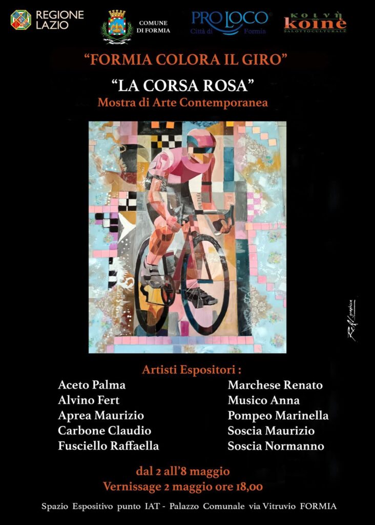Formia si prepara ad accogliere il passaggio del Giro d’Italia con un progetto che intreccia sport, arte e partecipazione: “Formia colora il Giro”, un’iniziativa culturale che trasforma l’energia della corsa in espressione creativa. Dal 2 all’8 maggio, lo spazio espositivo del Punto IAT, al pianoterra del Palazzo Comunale, ospiterà la mostra collettiva “La Corsa Rosa nell’Arte”, un percorso visivo ed emozionale dedicato al mondo del ciclismo, interpretato attraverso lo sguardo e la sensibilità degli artisti del territorio.