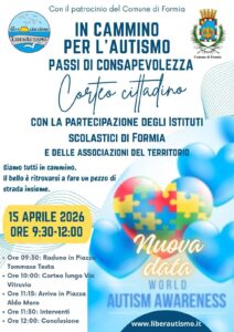 La Città di Formia promuove un’importante iniziativa di sensibilizzazione e partecipazione collettiva dal titolo “In cammino per l’autismo – Passi di consapevolezza”, in programma mercoledì 15 aprile.