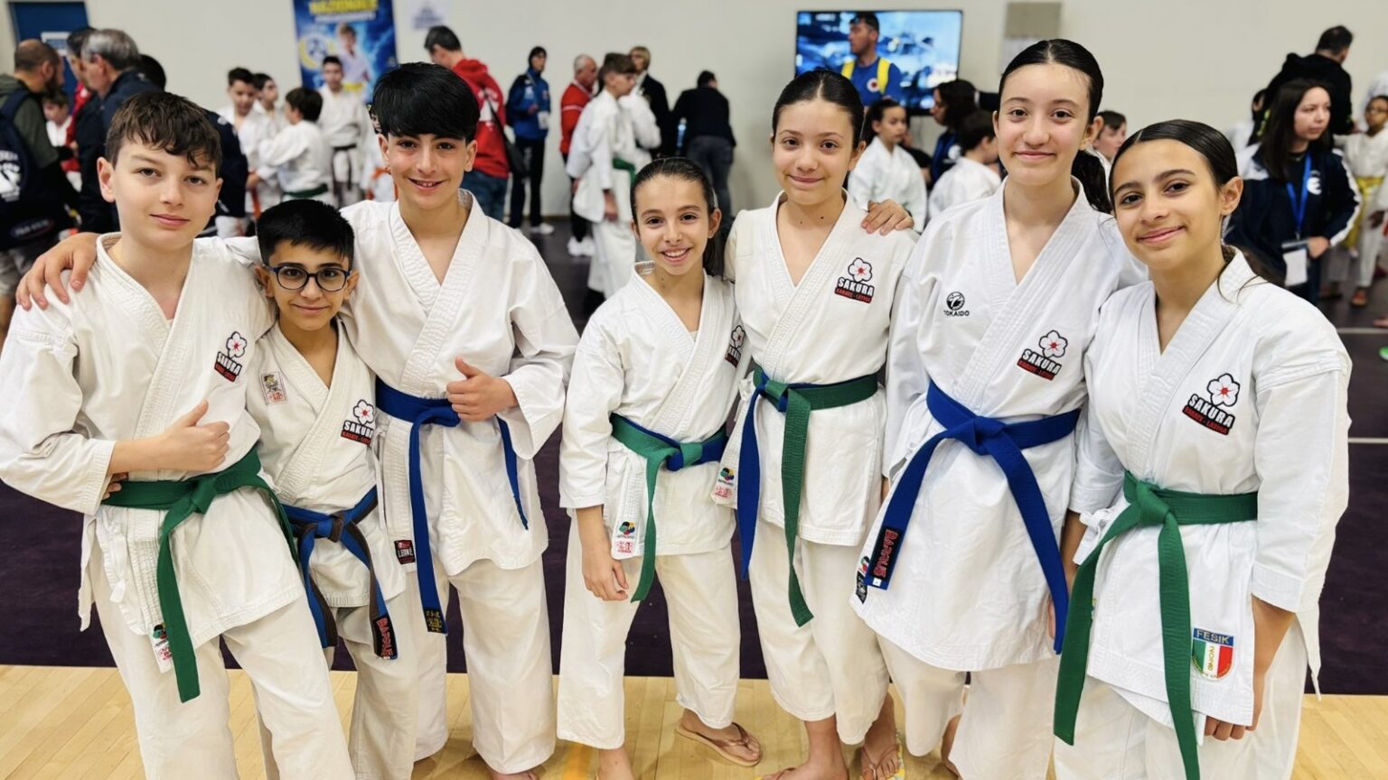 La Sakura Karate, presente con 7 atleti, ha ottenuto un risultato di grande rilievo conquistando 7 medaglie complessive, tra cui due titoli di campione italiano. A distinguersi in particolare Liam Esposito, oro nel kumite (categoria 12-13 anni cinture blu/marroni), e Asia Mellone, oro nel kata (categoria 12-13 anni cinture verdi). Entrambi hanno contribuito anche ad arricchire il medagliere con ulteriori piazzamenti tra Coppa Italia e competizioni a squadre.
