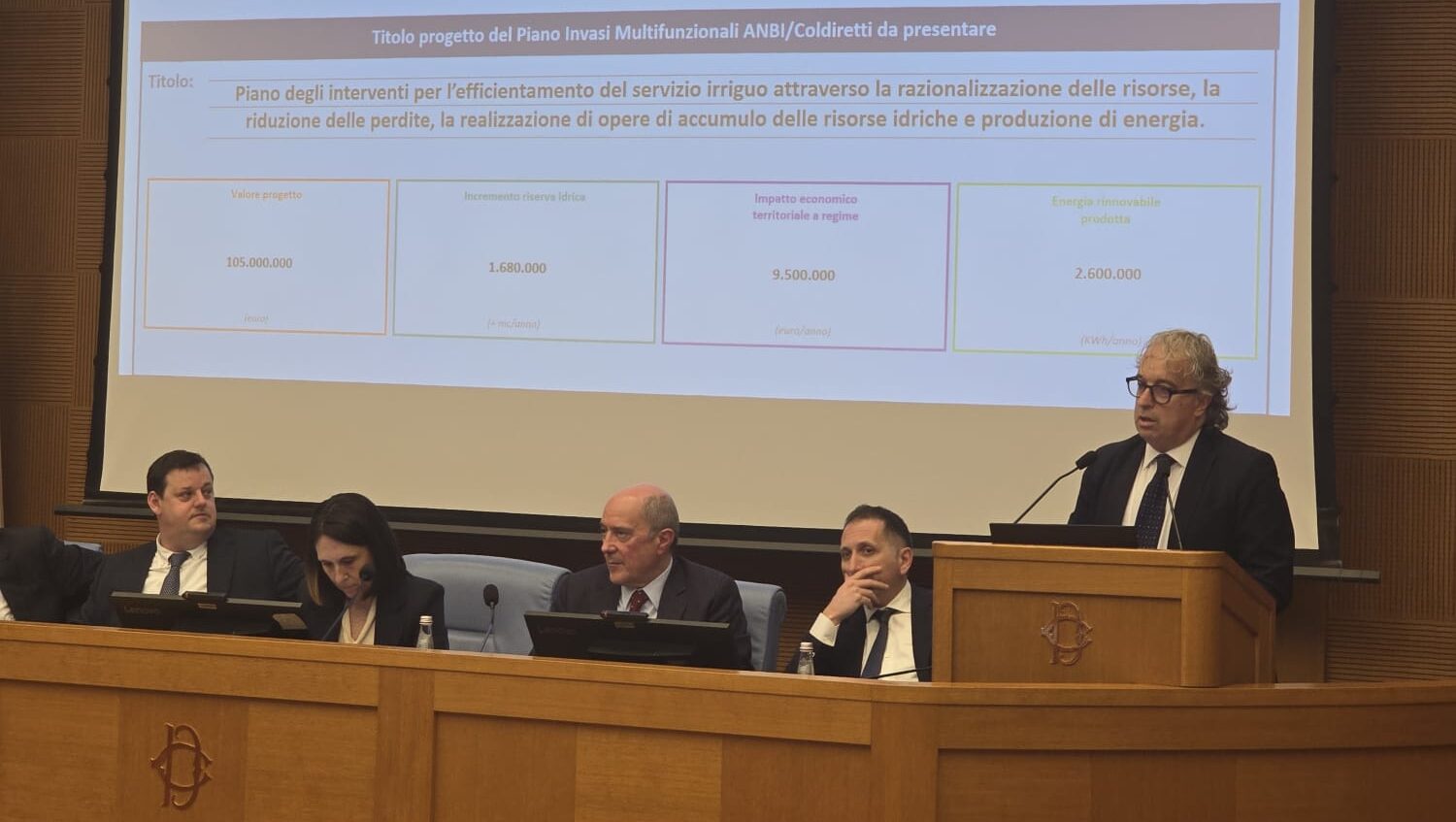 Oltre 260 progetti presentati a livello nazionale dai Consorzi di bonifica e irrigazione per il Piano Nazionale di Interventi Infrastrutturali e per la Sicurezza del Settore Idrico (PNIISSI) rappresentano una risposta concreta alle esigenze del Paese in termini di sicurezza idraulica, gestione della risorsa idrica e sviluppo sostenibile. Un impegno che, come emerso nei giorni scorsi a Roma nella Nuova Aula dei Gruppi Parlamentari, conferma il ruolo strategico dei Consorzi, capaci di mettere in campo progettualità diffuse, cantierabili e coerenti con gli obiettivi nazionali. In questo contesto si inserisce il contributo del Lazio, protagonista con 18 progetti per un valore complessivo di oltre 333 milioni di euro, finalizzati all’efficientamento del servizio irriguo, alla riduzione delle perdite, alla realizzazione di nuove opere di accumulo e alla produzione di energia rinnovabile. Gli interventi prevedono, tra gli altri obiettivi, un incremento della superficie irrigata, un significativo risparmio della risorsa idrica e un impatto economico positivo sui territori, oltre alla creazione di nuova occupazione e benefici ambientali in termini di riduzione delle emissioni. Alla presentazione erano presenti, per il sistema dei Consorzi del Lazio, il Direttore di Anbi Lazio e del Consorzio di Bonifica Litorale Nord, Andrea Renna; il Direttore dei Consorzi di Bonifica del frusinate, Aurelio Tagliaboschi; il Presidente del Consorzio di Bonifica Lazio Sud Ovest, Lino Conti, insieme al Direttore Generale Tullio Corbo; il Presidente del Consorzio di Bonifica Etruria Meridionale e Sabina, Gianluca Pezzotti, con il Direttore Generale Vincenzo Gregori oltre ad alcuni rappresentanti delle strutture tra i quali le due giovani ingegneri del Consorzio di Bonifica Litorale Nord, Arianna Manoni e Sara Bartoletta, che hanno coordinato il quadro di sintesi. Esempio concreto di un invaso, tra quelli più significativi, illustrato con qualche dettaglio in più, è emerso il progetto del Consorzio di Bonifica Litorale Nord di Roma, incentrato sulla realizzazione di invasi multifunzionali nell’area di Cerveteri, con l’obiettivo di aumentare la capacità di accumulo idrico, migliorare l’efficienza del sistema irriguo e contribuire alla produzione di energia rinnovabile. L’intervento prevede un volume utile di regolazione pari a circa 1,68 milioni di metri cubi, configurandosi come un’infrastruttura strategica per affrontare le sfide legate ai cambiamenti climatici.