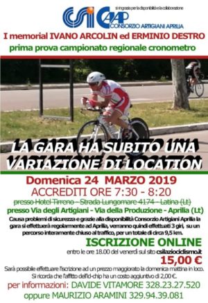 Aprilia, domenica la prima prova Campionato Regionale a Cronometro