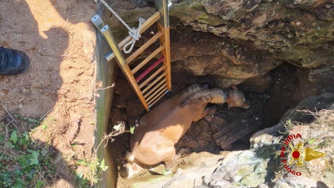 +++VIDEO+++ LENOLA, cavallo in pericolo: portato in salvo dai Vigili del Fuoco