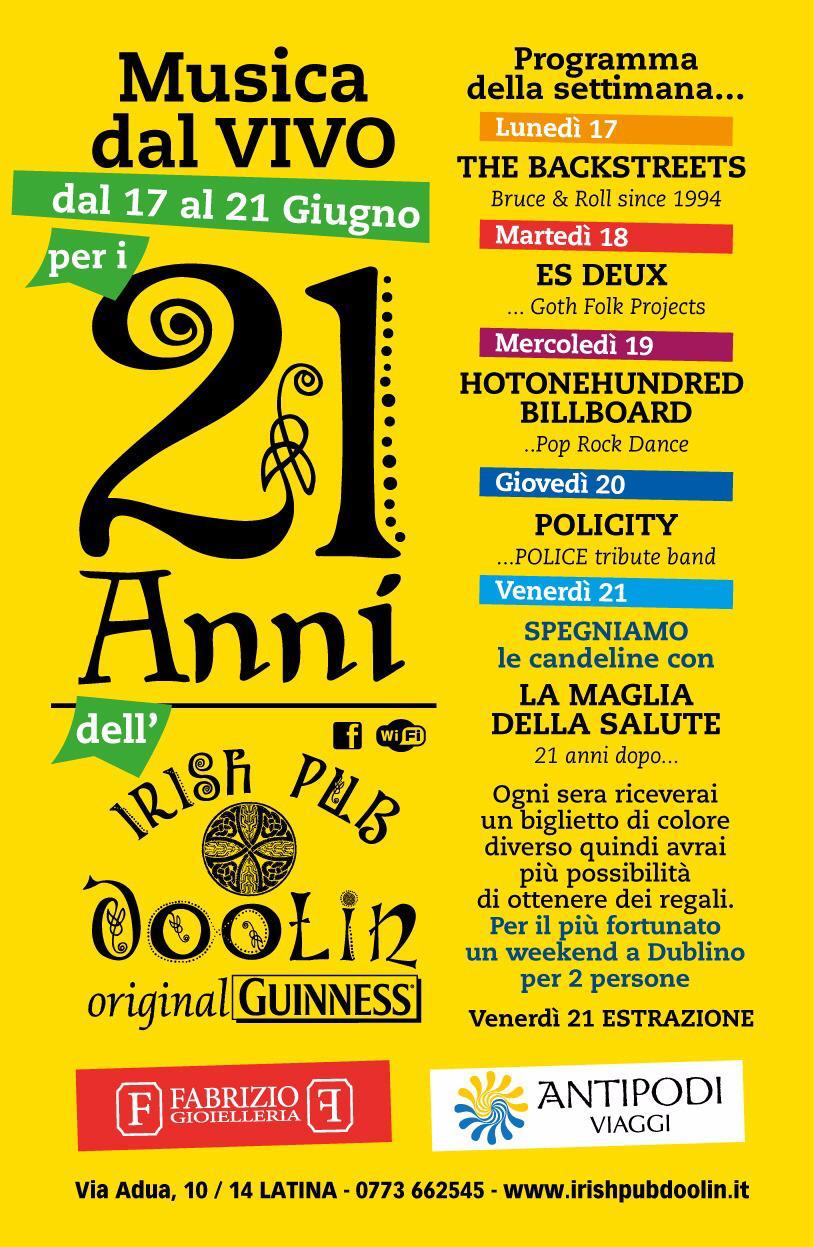 Per celebrare i 21 anni dell’Irish Pub Doolin, di via Adua a…